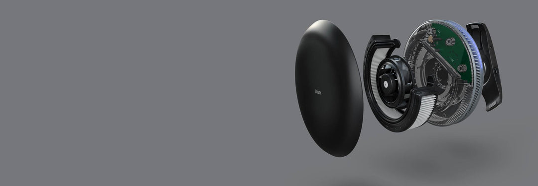 The filter’s integrated ID-chip allows the Atem to monitor the lifespan of the filter. The system keeps track of the actual usage (operation time and fan speed) to compute the remaining lifespan and to maximise filter life. Once the calculated filter life reaches the last 5%, the user is alerted via the app and by a visual and audible signal emitted by the Atem. Upon insertion of the new HyperHEPA filter the Atem recognises it and automatically resets the filter life monitor.
