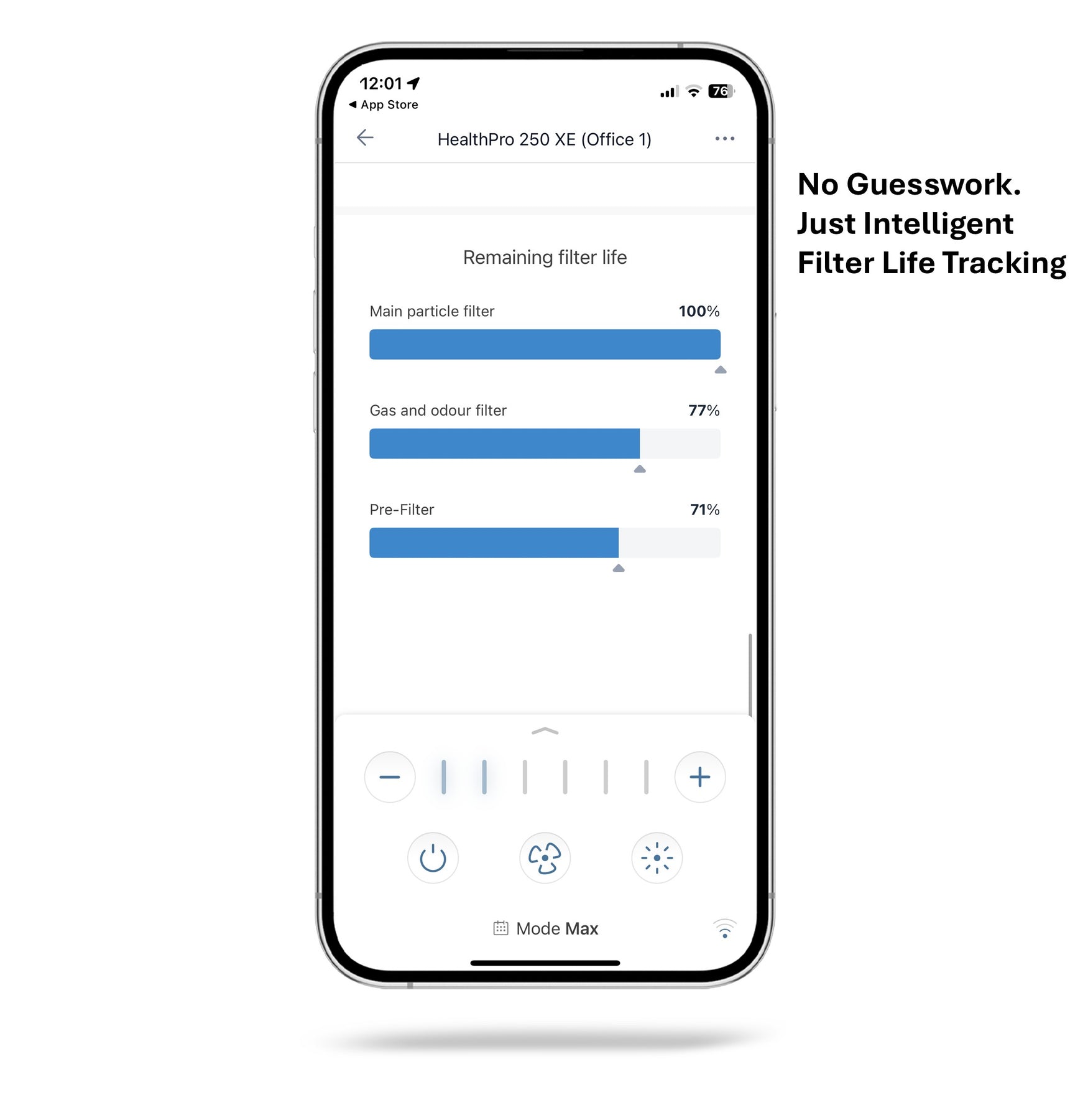 - Intelligent filter-life monitoring based on actual usage and air quality conditions