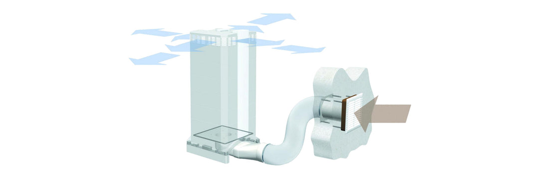 The supply of filtered air to a closed indoor environment reduces air pollution in that area by dilution and the creation of positive pressure, which decreases the influx of contaminated air from outside. With the InFlow adaptor, the IQAir filtration system is positioned inside the room where clean air is desired.